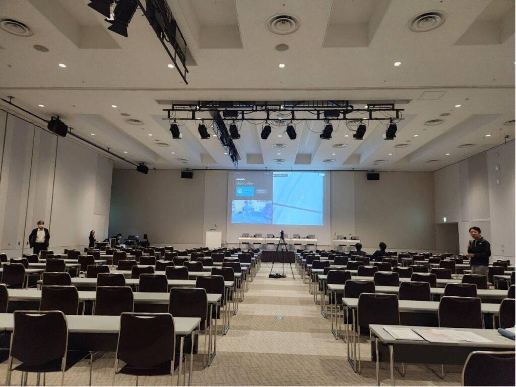 今回の会場は初めての会場になりますのでどんな感じになるのか心配していましたが、自分の予想をはるかに超える非常に立派な会場に仕上がっていました。自分のチェックポイントは天井の高さと、音声、映像のクオリティー、会場のレイアウト、会場外のエクストラスペースの状況、立地というところでしょうか?